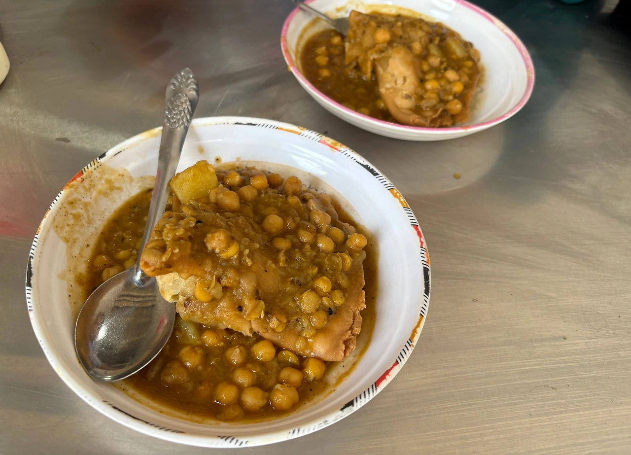 사모사를 으깨어 병아리콩이 들어간 요거트와 같이 먹으니 고소하면서 양파가 느끼함을 잡아주면서 매운 향신료가 깔끔하게 뒷맛을 잡아줬다. 35도가 넘는 더운 날씨에 땀 흘리며 먹기 딱 좋은 음식이었다.