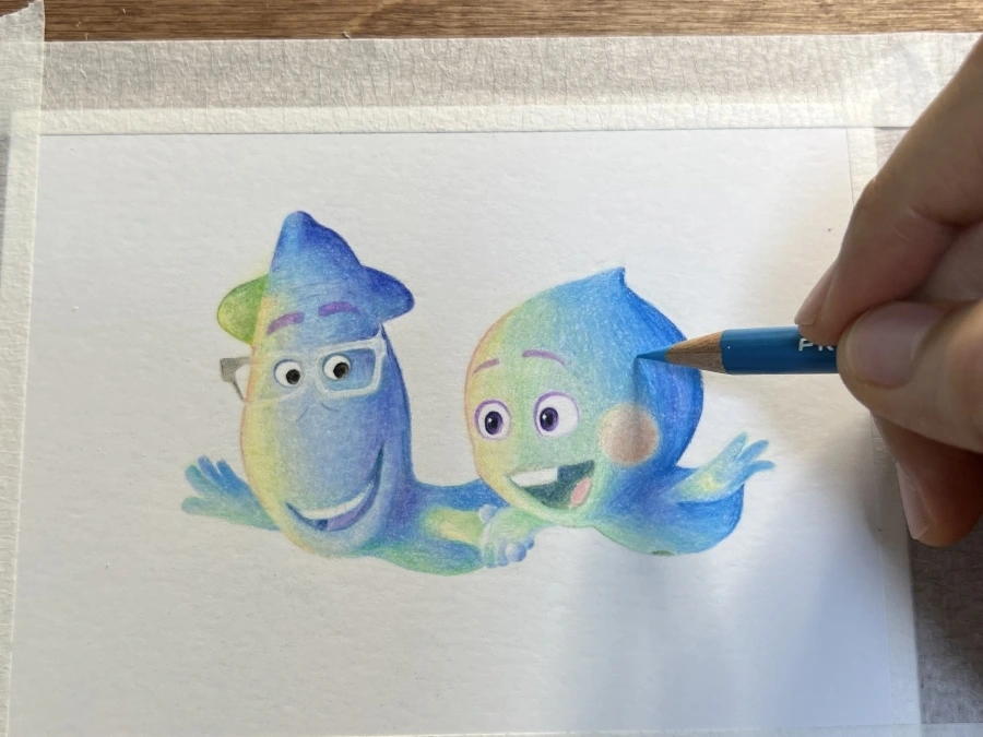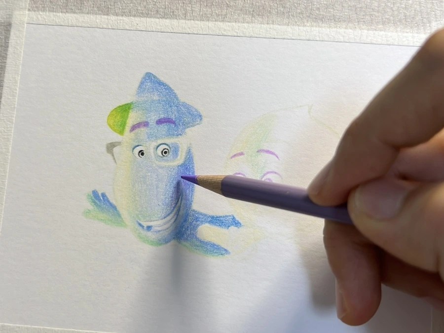 내가 그린 장면은 삶의 의미를 깨달은 22번에게 조 가드너가 지구 배지를 건네고, 서로 손을 잡고 함께 지구를 향해 뛰어내리는 순간이다.