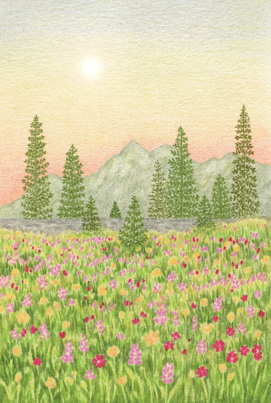 그 가운데서 느끼는 벅찬 아름다움을 색연필로 담아내고 있다.