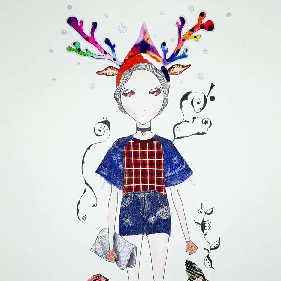 그렇게 탄생한 사슴 캐릭터 우슴이에게 옷을 입히기도 하고 다양한 컨셉을 넣어 그리는 등의 작업을 했다.