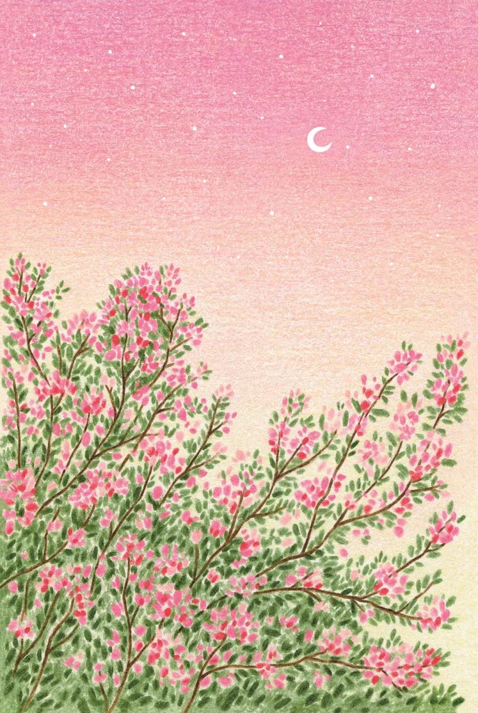 꽃과 하늘, 달, 나무들.