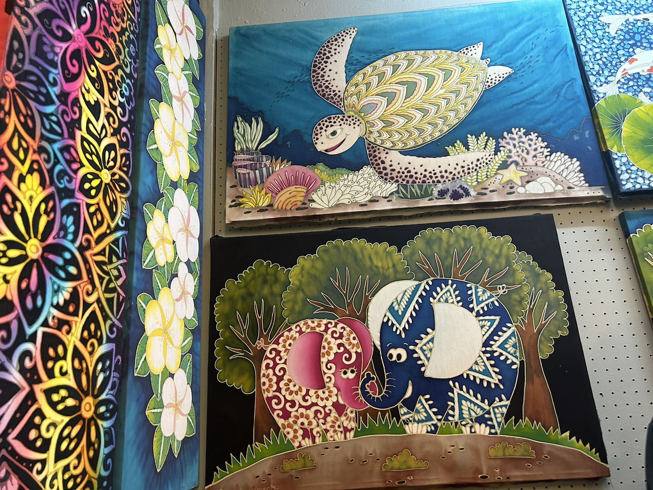 바틱체험만 하고 바로 집으로 오려던 계획이었는데 비가 쏟아진다. 비가 그칠 때까지 잠시 주변을 둘러보기로 한다. 주변을 둘러보다가 둘째가 기념품 하나에 꽂혔다. 못 산다는 말에 입이 나온다. 좋은 게 보이면 무조건 사려고 하는 버릇을 이 참에 고치자 싶었다. 얼르고 달래도 여전히 입이 나온 둘째에게 어떻게 갖고 싶은 거 다 가지느냐고 다그친다.