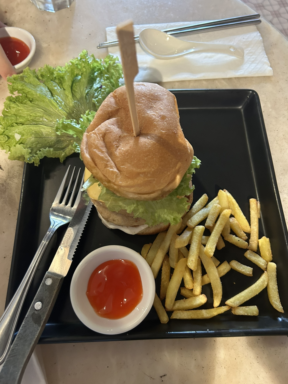 근처에 먹을 만한 곳을 못 찾고 마스지드 자멕 역으로 간다. Warong Old China라는 곳에 들어가 나는 락사, 첫째는 차퀘이테오, 둘째는 치킨버거를 주문한다.
