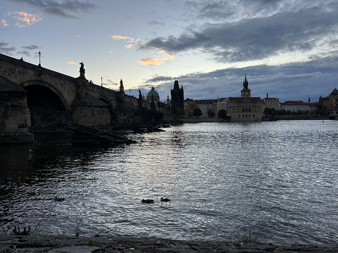 캄캄한 새벽, 까를교에 서 있는 사람은 열손가락이 모자라지 않을 정도였고 어두운 하늘과 찬란한 강물을 보며… 나는 울었다.