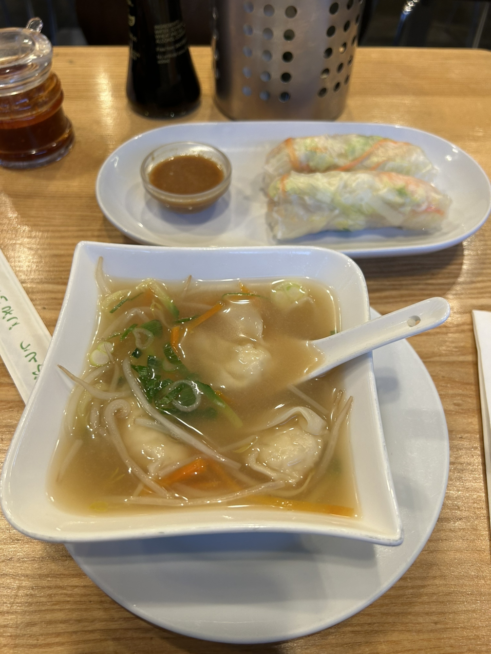 홀린 듯이 쌀국숫집으로 들어가 완탕면과 롤을 먹는다.