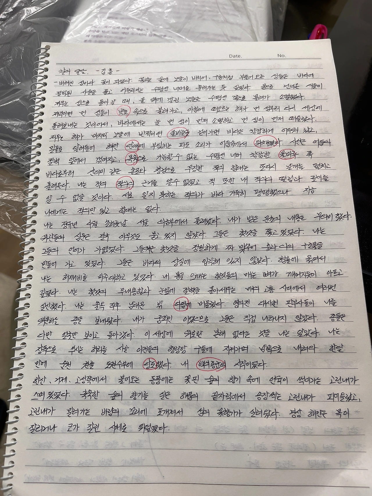 칼의 울음 필사