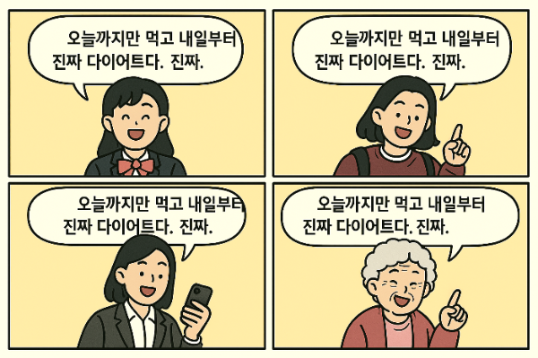 “오늘까지만 먹고 죽고, 내일부터 진짜 다이어트.”