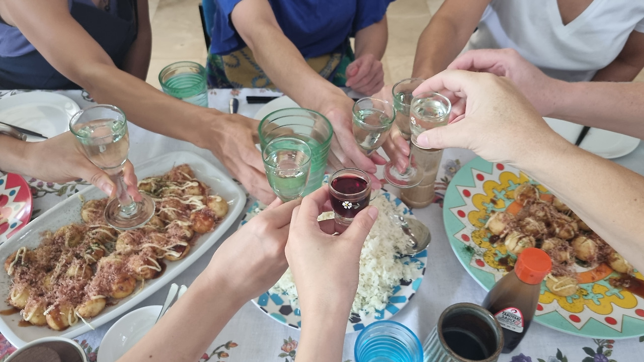 한 달에 두 번 정도 만나 각자 나라의 음식을 함께 만들고 먹어보는 시간을 가졌다. 영어는 크게 늘지 않았지만 자카르타라는 도시에서 오코노미야끼 기계를 돌려 만들어 보고, 독일식 케이크, 스프링롤, 고수와 향신료가 가득한 라오스 음식까지 경험해 보고 우리나라 음식 김치, 김밥, 잡채, 보쌈, 도토리묵까지 전수해 주었다.