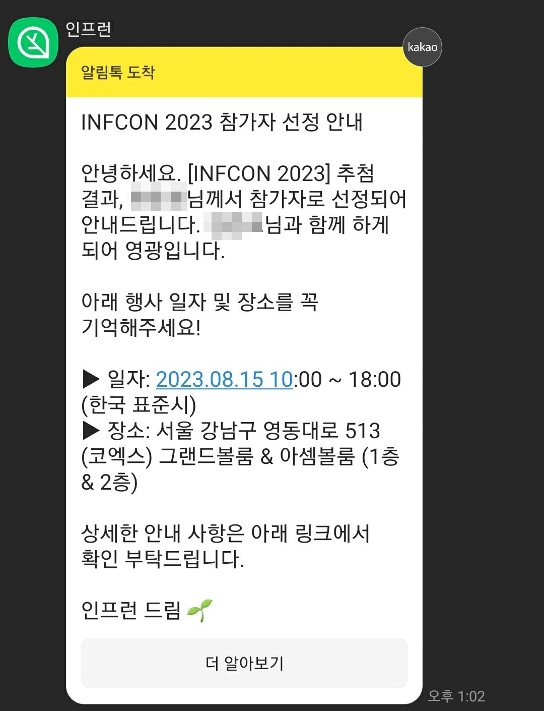8월 15일, 인프런에서 주최한 개발자 컨퍼런스 인프콘 INFCON 2023에 다녀왔다. 작년에 이어 두 번째로 열리는 컨퍼런스다.