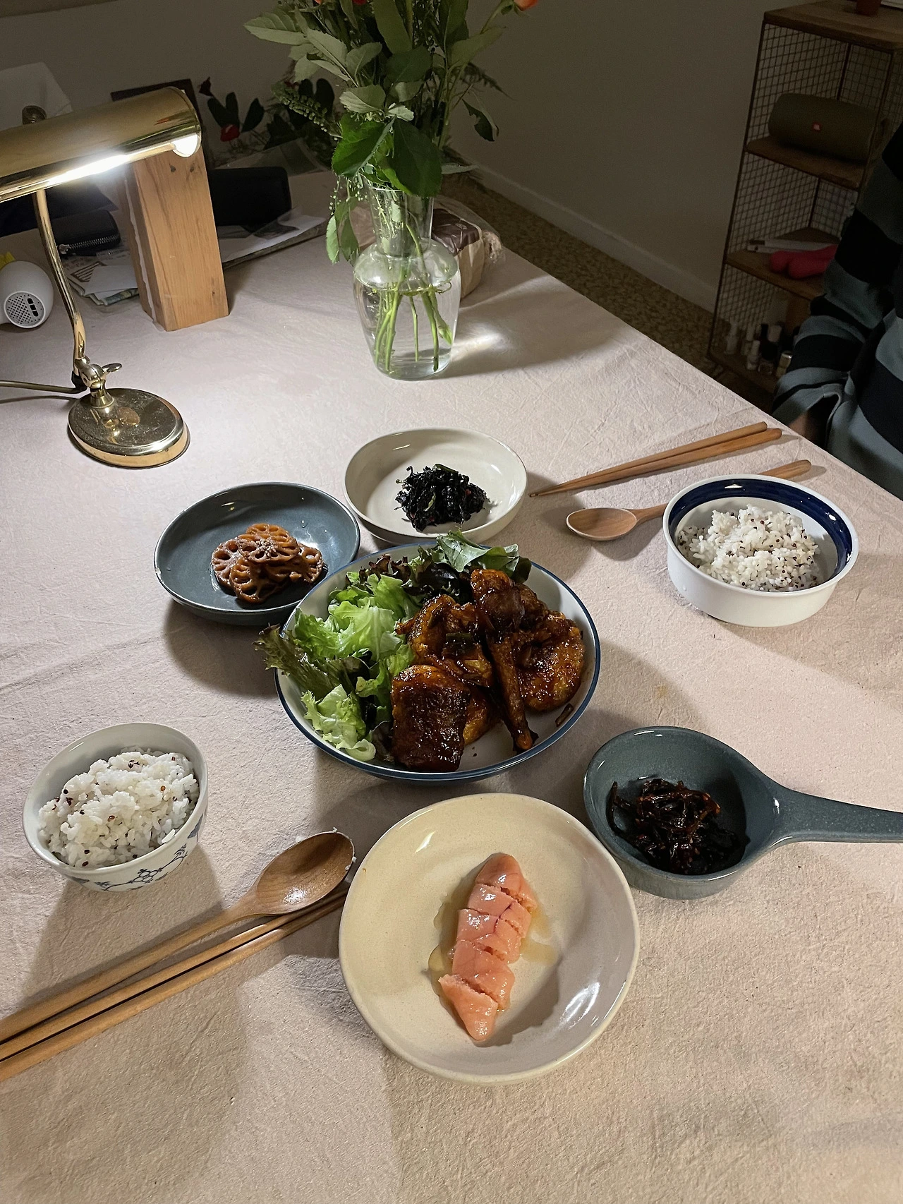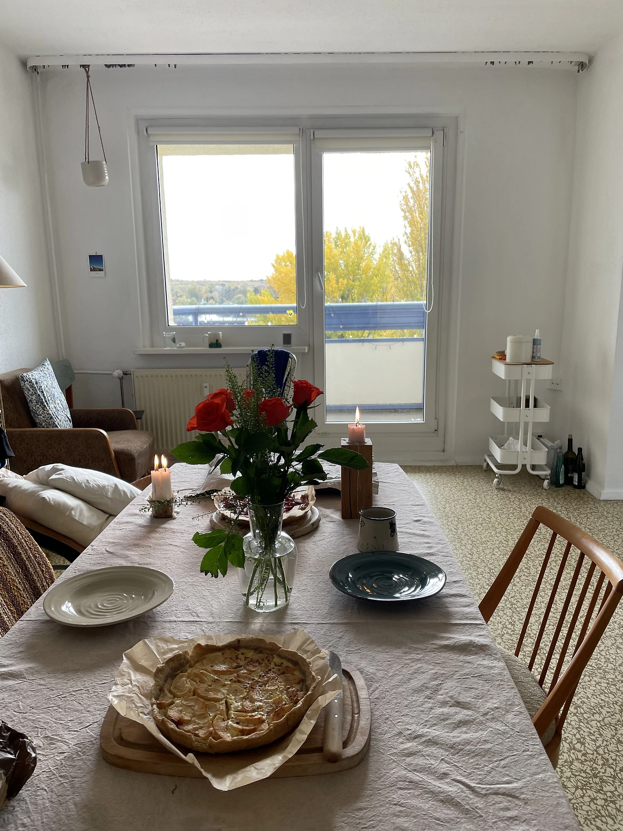 애플파이 웰콤 서프라이즈에 감동의 물결이 넘쳐흘러 피곤함을 잊었다. 정말 도파민이 나오면 이런건가? 따뜻한 차한잔에 애플파이를 오손도손 나눠먹고(3일동안 먹을 수 있는 양이지만) 마주보고 앉았다. 나도 뭐라도 보답하고 싶은 마음에 나답지 않게 오자마자 짐을 풀고 쟁여온 반찬을 꺼내 저녁을 차렸다. 다행히도 이렇게 간단히 차리고자 하는 목적으로 친구의 반찬가게에서 사온 반찬이 요기나게 쓰이는 순간이다. 냄비밥만 간단히 하고 반찬가게에서 그대로 들고온 플라스틱통에서 사기접시로 옮겨 담았을뿐이지만 그럴싸 했다. 아, 베를린에도 이런 반찬가게가 있으면 얼마나 좋을까? 잠깐 의미없는 푸념을 하고. W는 고들빼기김치에 반하고 코다리 조림의 뼈를 열심히 발라 먹었다. 건파래무침은 미역줄기와 뭐가 다른지 명란젓은 무슨 생선의 알인지 등등 별얘기 아니지만 끊기지 않는 이런 수다. 같이 앉아 밥먹는게 뭐 대수냐 싶지만 나에겐 매우 중요하고 소중한 일.