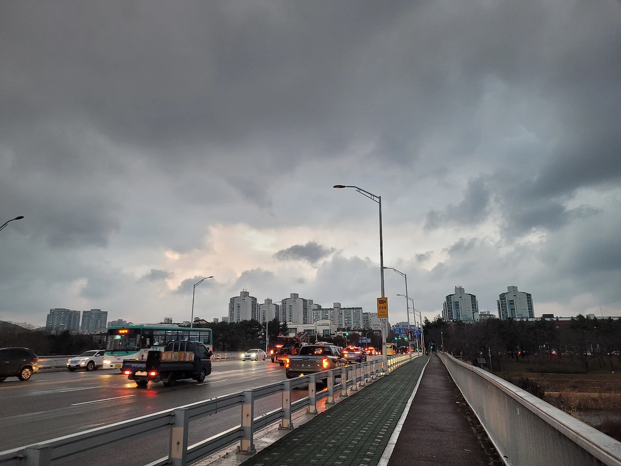 먹구름 가득 낀 탄천