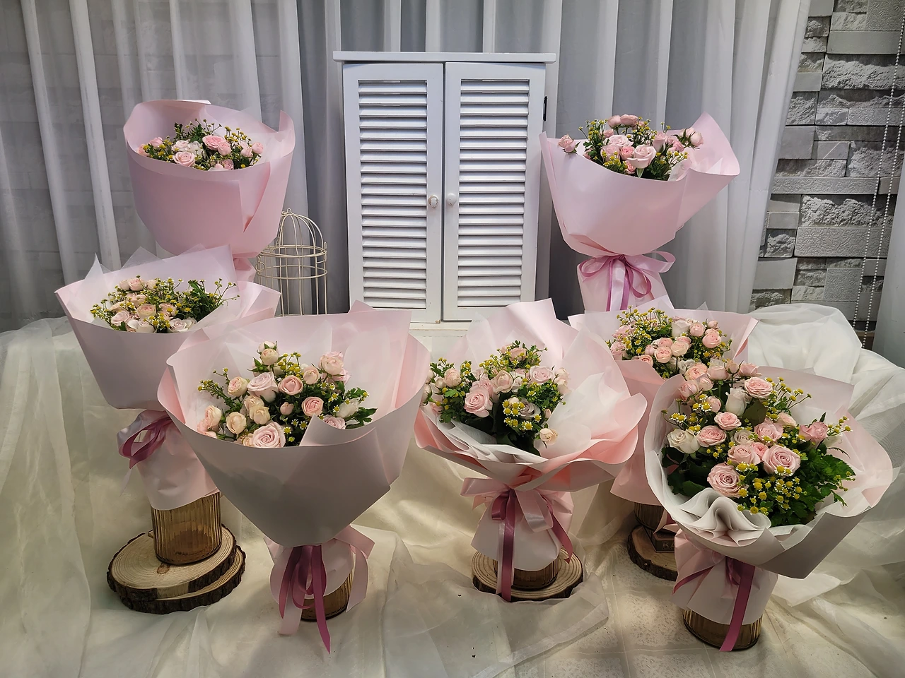 같은 클래스 학생들이 만든 꽃다발들
