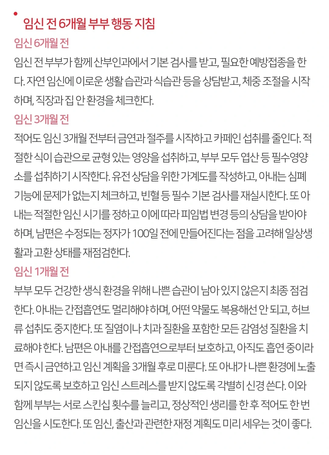 아무런 계획 없이 임신하면 그만큼 임신위험이 높아진다. 예방접종 할 것 다 하고 영양제도 챙겨가며 몸을 만들고 임신하는 계획임신이 중요하다.