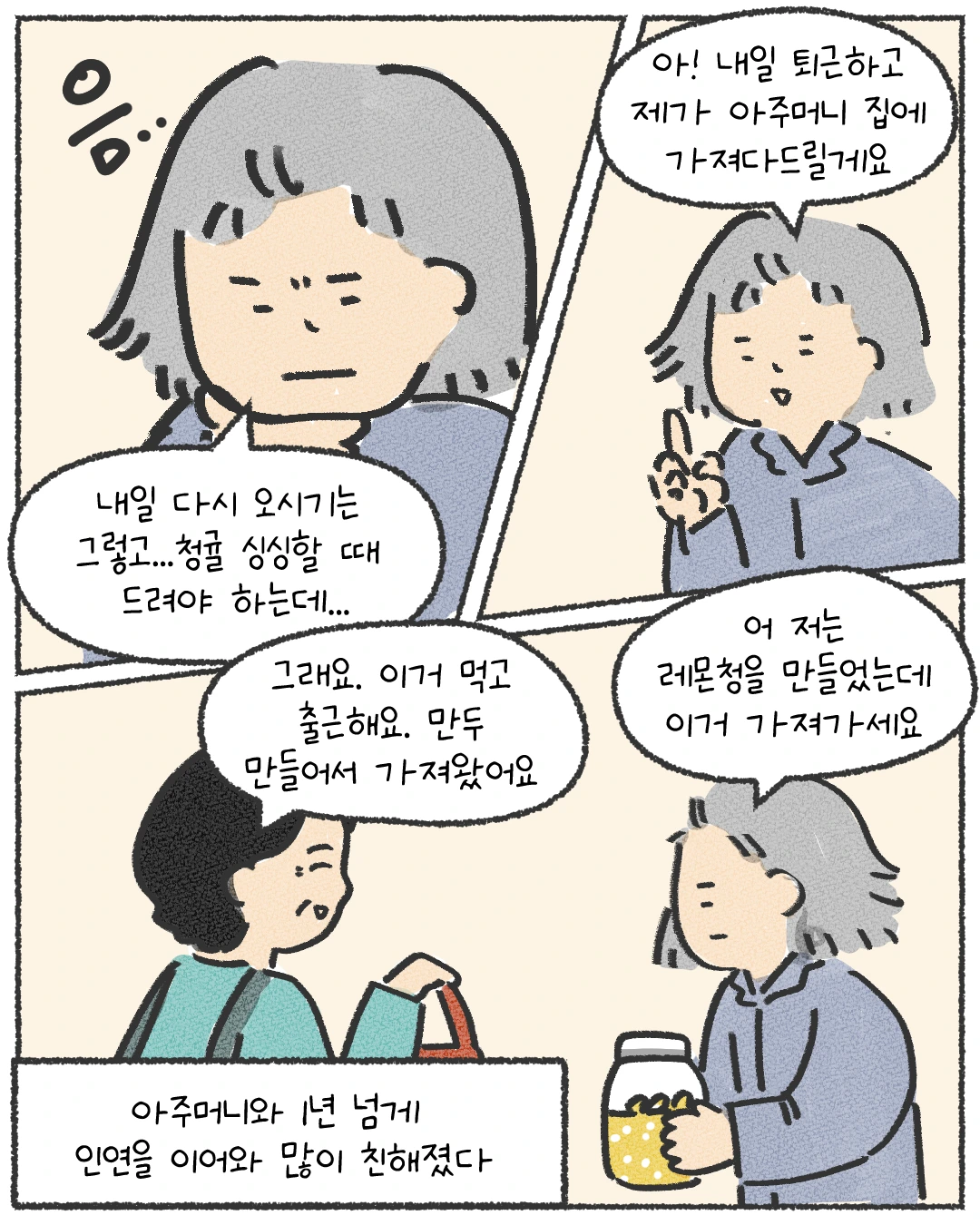 청귤 드린 이후로 아주머니 집에 방문하기 시작하여