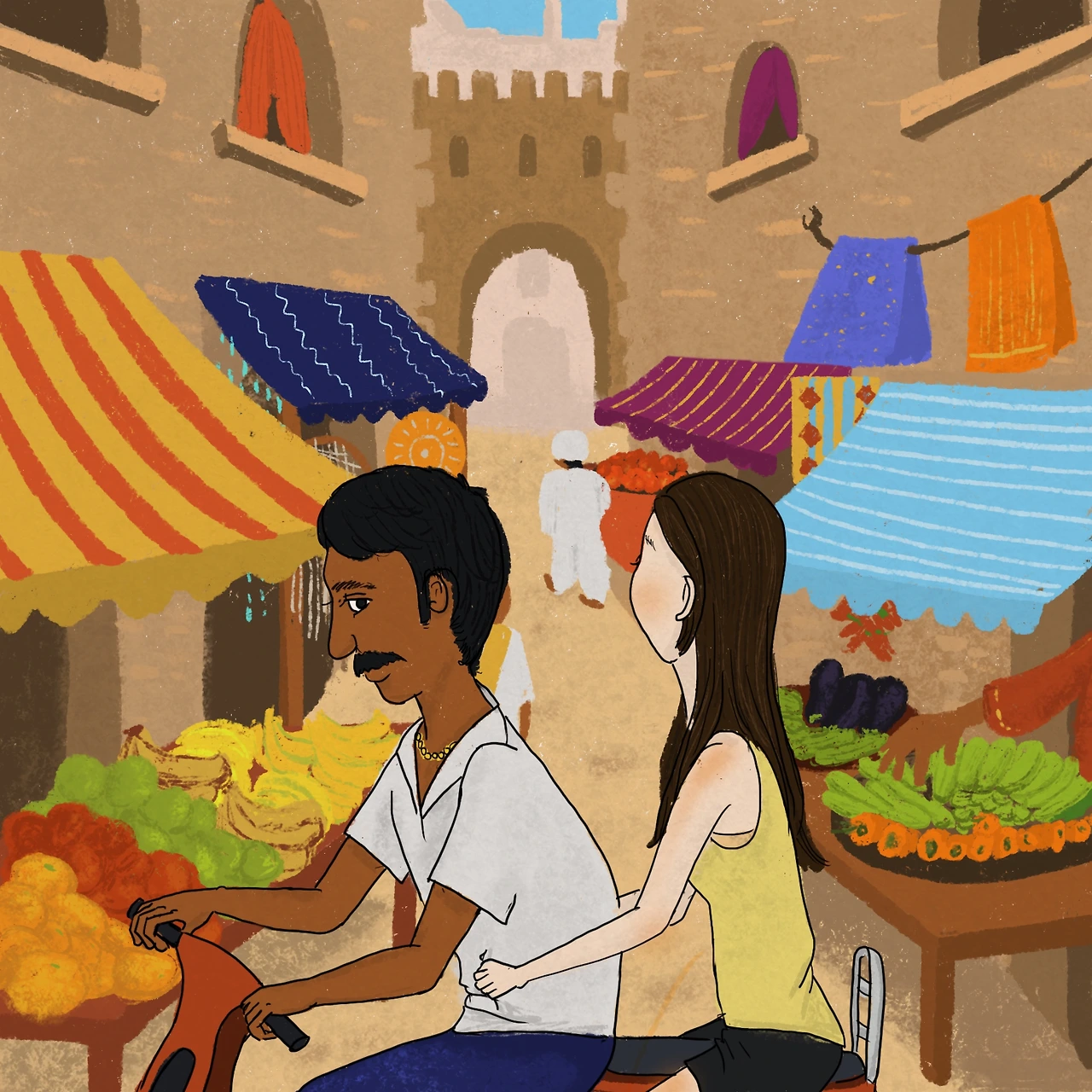 그런데 이게 웬일, 지나가던 오토바이를 탄 아저씨가 내 행선지를 묻는 게 아닌가. 자기도 가는 방향이 같으니 괜찮으면 태워주겠다는 말과 함께! 나는 아무 의심 없이 오토바이를 얻어 타고 무사히 시장에 도착했고, 맛있는 시장 음식을 명치가 아플 만큼 먹고 집에 돌아왔다.
