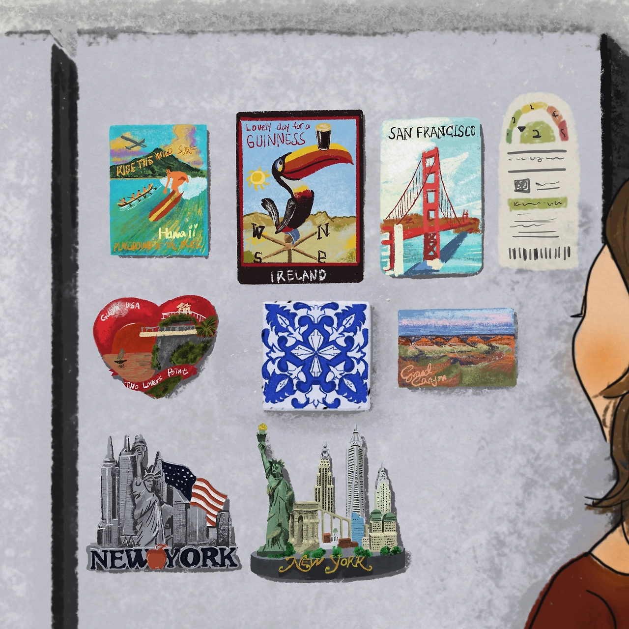 졔졔는 마그넷으로 여행을 추억하는 만큼 여행지마다 마음에 쏙 드는 하나를 찾는 건 정말 중요한 일이다. 하지만 유일하게 썩 마음에 들지 않는 모양인데도 좋은 기억이 담긴 마그넷이 있다. 쉬는 날을 맞아 뉴욕에 여행 갔을 때의 일이다. 언제나처럼 집으로 데려갈 마그넷을 구경하고 있었는데, 실수로 떨어트리는 바람에 마그넷에 있는 빌딩이 부러져버린 것이다! 마음에 드는 모양도 아니었는데!
