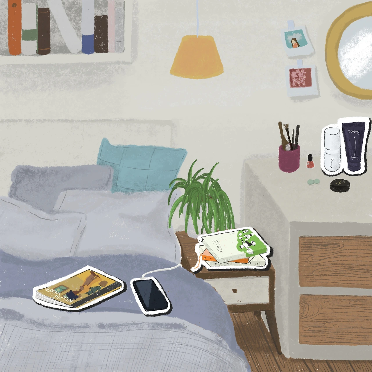 침실에서 만나는 구독서비스: 리디북스 (전자책 대여), New yorker (잡지), 알라딘 한국어 책 (희희의 자체 구독 서비스로 3개월마다 해외 주문), Cuology (기초 화장품 컨설팅 & 배달)