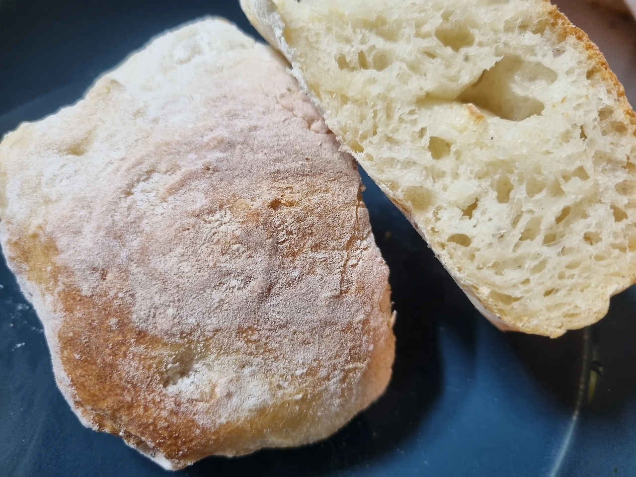 부풀더니 신비로운 촉감을 만들고 기공을 만들어 퐁신한 치아바타스런 빵이 완성되었다. 밀가루를 끈은 딸램은 향기를 맡더니 미소를 짓는다.