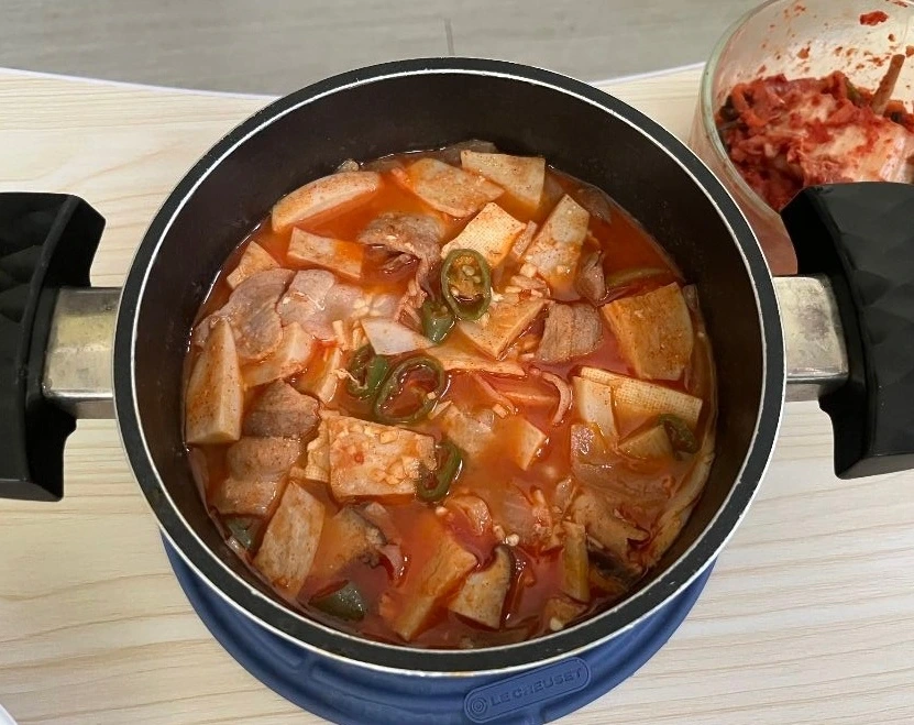 찌개를 끓였다고 사진을 보내온다. 제법이다.
