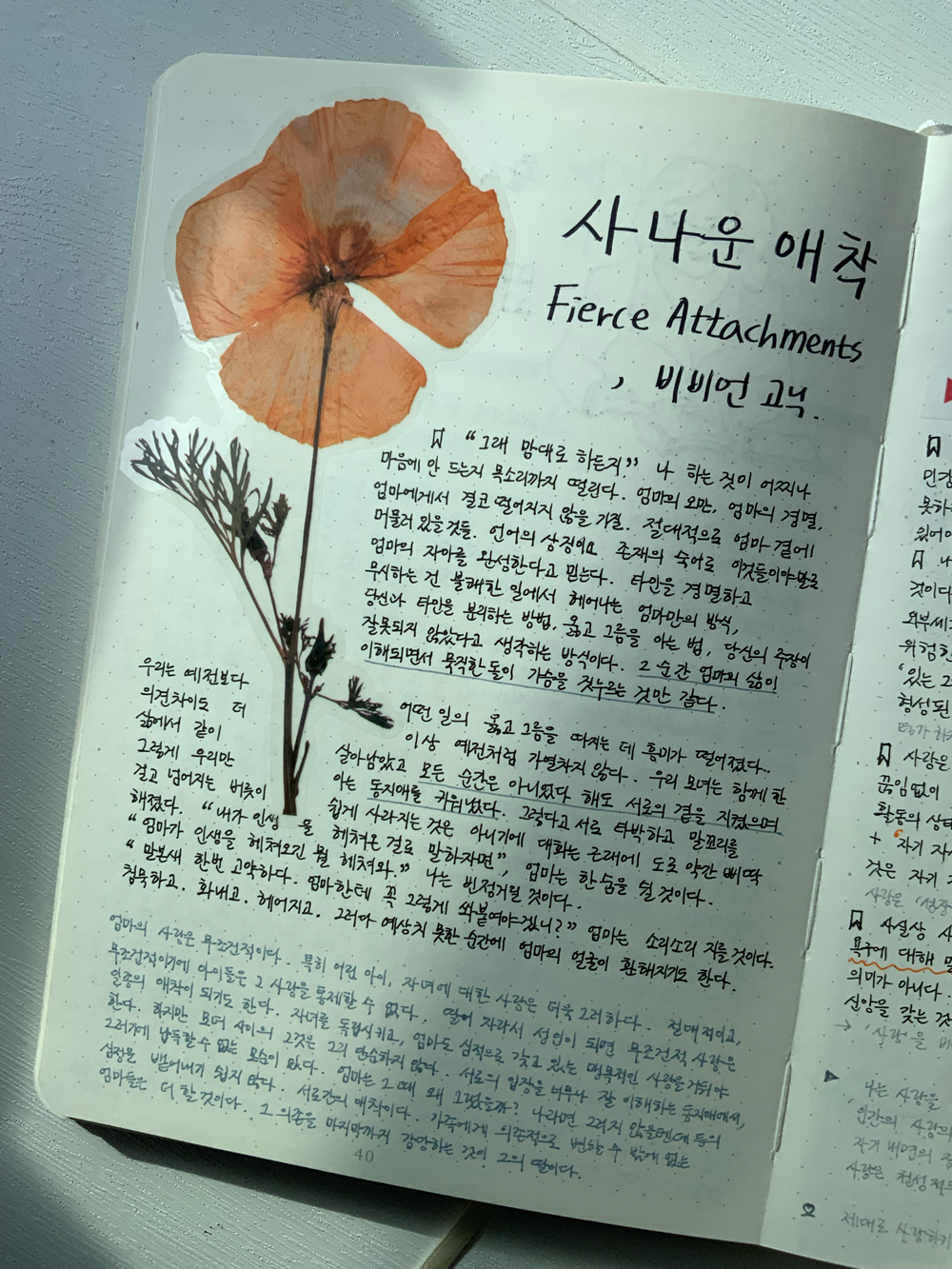 독서 기록이다. 기록의 형식은 여러 가지가 있지만, 취미처럼 즐길 수 있는 것이 필사 아닐까?