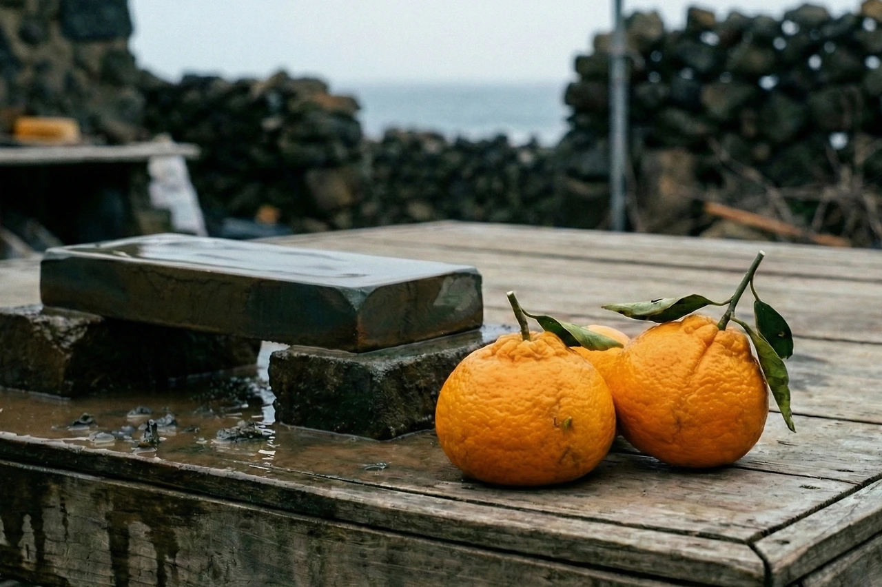 내 트럭 엔진 소리만 들리면 삼춘은 바다에서 막 올라온 모습으로 맨발로 뛰어나오곤 했다. 젖은 해녀복을 반쯤 걸친 채 숨을 헉헉거리며 손을 내밀고는, 주머니에서 늘 작고 따뜻한 것을 꺼냈다.