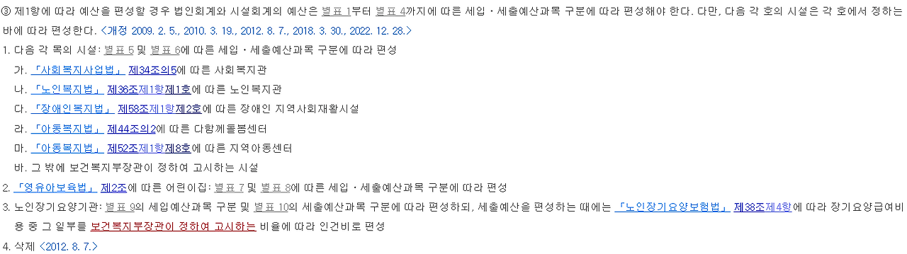 1) 일반적으로 법인회계와 시설회계일 경우 규칙 내 별표 1부터 별표 4까지 나와 있는 세입·세출예산과목을 활용하여 예산을 작성하도록 명시하고 있고,