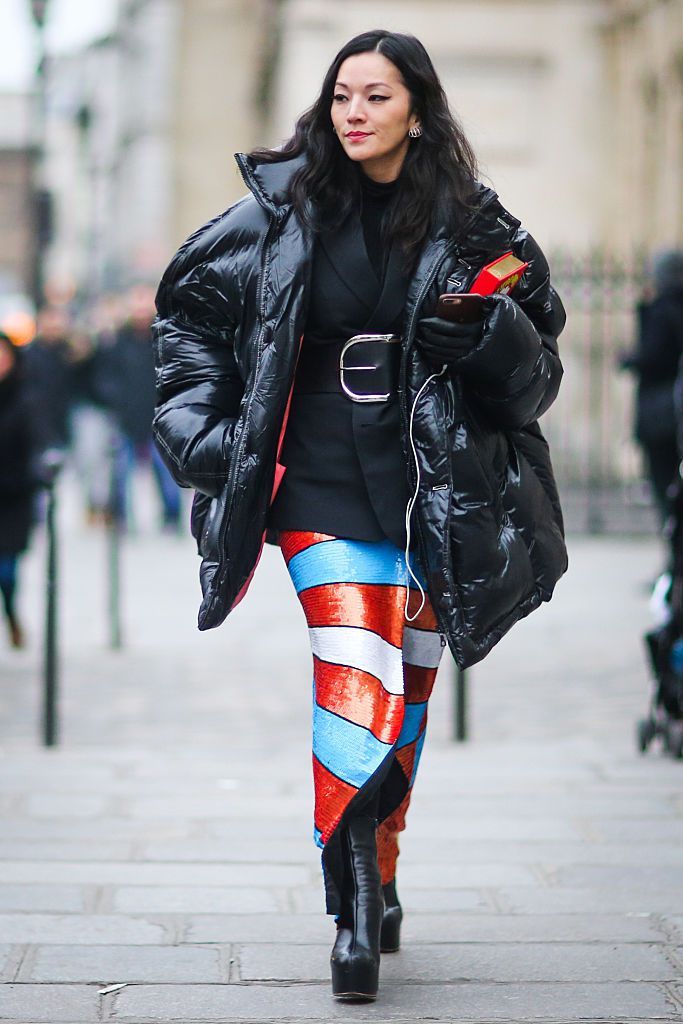 또 일반적으로 푸퍼 재킷은 데님 재킷과 같은 캐주얼한 아이템과 코디를 많이 하지만, 올 겨울에는 맥시 드레스와 믹스 매치하는 방법을 추천해본다.