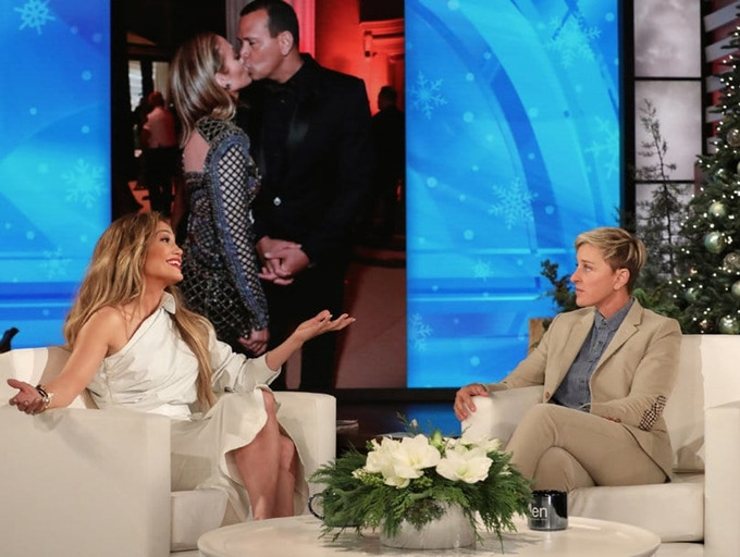 미국 CBS '엘렌 드제너러스 쇼' 에 출연한 제니퍼 로페즈는 관능미 넘치는 화이트 모노크롬 룩을 연출했다. 특히 한쪽 어깨를 노출한 원숄더 드레스는 은은한 섹시미를 자아내기에 충분했고, 골드 메탈 팔찌와 레드립 포인트 메이크업은 연말 느낌을 한껏 돋보이게 했다 .