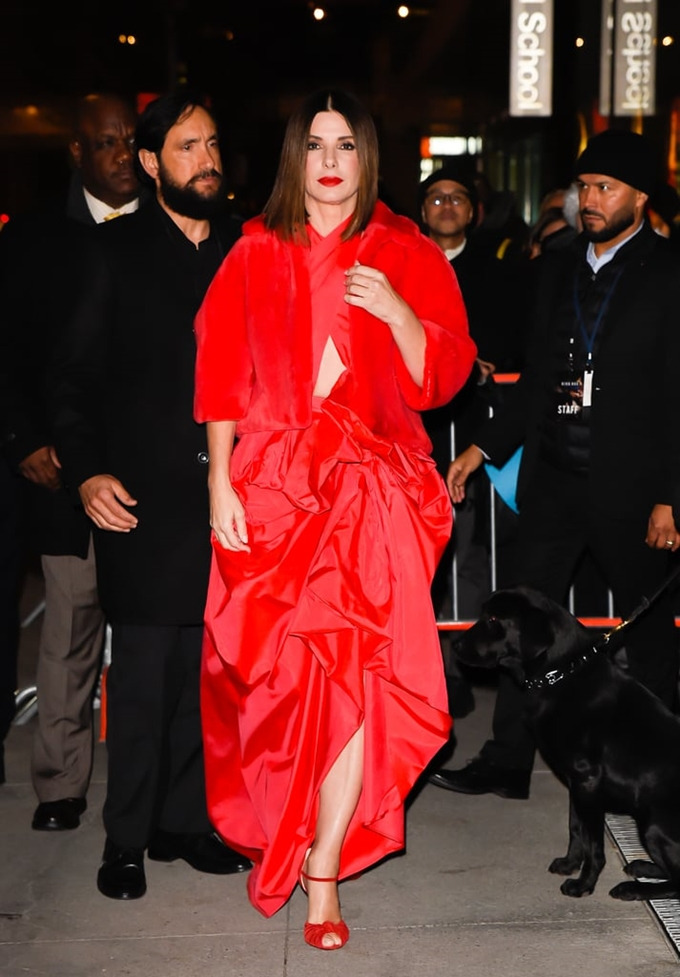 지난 20일 넷플릭스 스릴러 영화 '버드 박스' 시사회에 참석한 산드라 블록은 레드 모노크롬 룩으로 크리스마스 분위기를 강조했다. 과감한 컷-아웃과 입체적인 실루엣을 강조한 레드 드레스에 7부 소매 레드 컬러 크롭트 재킷, 스트랩 오픈-토 슈즈를 매치하며 환상적인 트레플 레드 조합을 탄생시켰다.