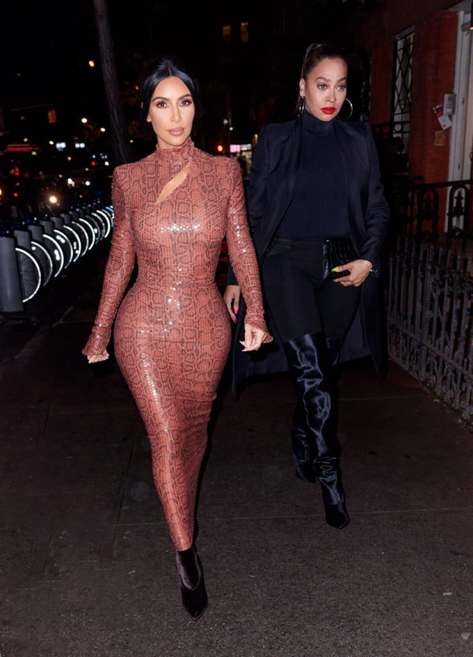 지난 2월 8일 킴 카다시안은 미국 유명 토크쇼에 출연해 초밀착 파이톤 프린트 드레스를 입어 시선을 강탈한 바 있다. 해당 제품은 디자이너 브랜드 '티에리 뮈글러'의 '마리 파이톤(Marie Python)' 제품으로 네크라인의 슬래시, 스팽글 장식이 포인트다.