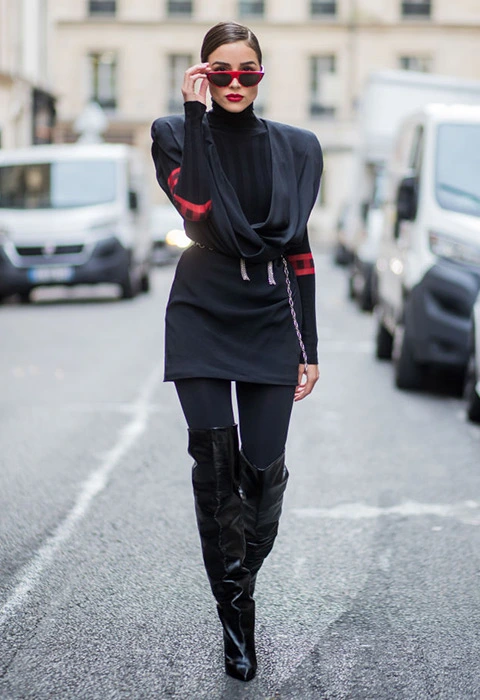 다소 부담스럽다면 맥시 코트 혹은 롱 스커트와 코디해 은은한 멋스러움을 드러내는 방법이 있다. 걸을 때마다 살짝살짝 드러나는 부츠 주름이 스타일 지수를 한층 더 상승시켜준다.