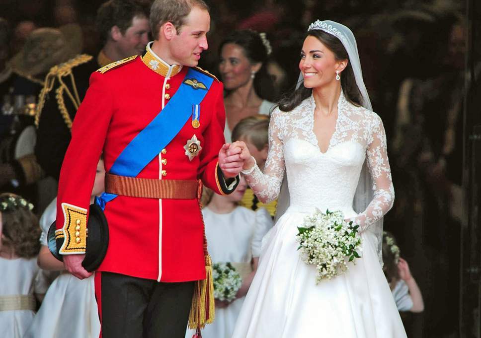 케이트 미들턴의 드레스는 알렉산더 맥퀸 크리에이티브 디렉터 사라 버튼이 디자인한 것으로 어깨부터 소매 전체의 레이스 디테일이 페미닌한 분위기를 강조해준다. (그레이스 켈리 드레스에 영감을 받았다는 후문)