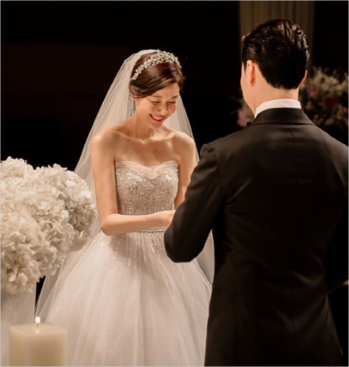 깜짝 결혼 소식을 전한 최지우의 드레스는 전 세계에 단 한 벌 뿐인 드레스다. 레바논 패션 디자이너 모하메드 아시라 런칭한 아쉬스튜디오 제품으로 그녀 특유의 청순하고 단아한 느낌을 부각시켜줬다.