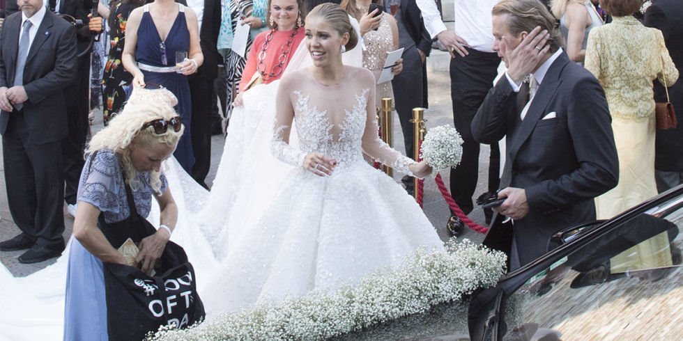 그레이스 켈리의 웨딩 드레스는 두고두고 영감이 되고 있는 세기의 웨딩드레스다. 영화 의상 담당인 헬렌 로즈가 디자인했으며 긴 소매 높은 목 레이스가 특징이다. 지금 봐도 전혀 촌스럽지 않고 우아하다.