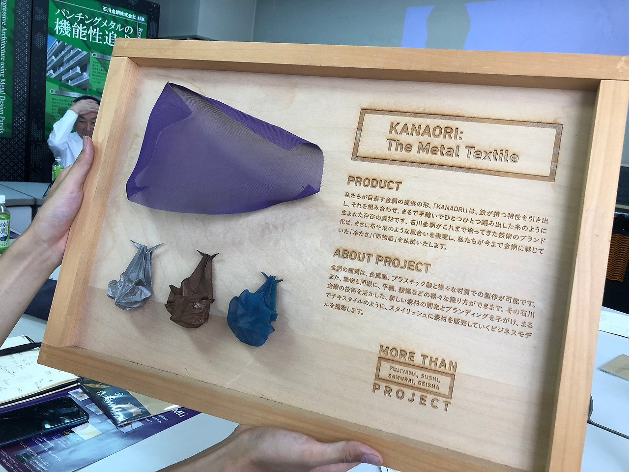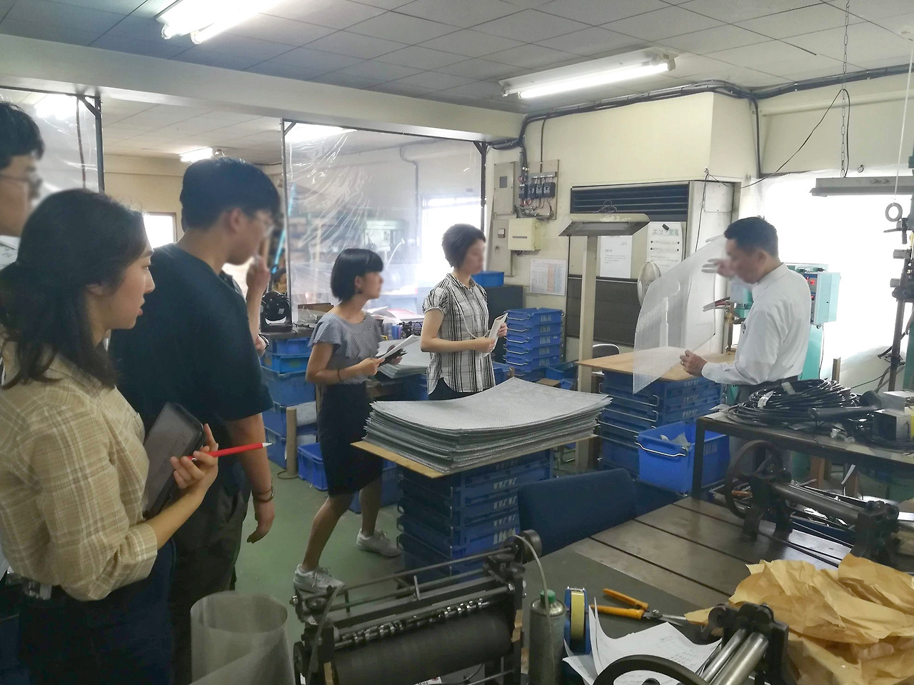 사실 처음엔 철망이라는 소재가 낯설고 전문 분야로만 느껴져 부담이 컸었다. 하지만 직접 회사를 방문해 얘기를 들어보니 어렵지만도 않았고, 오히려 흥미로운 점이 많았다. 현장 탐방 동안 회사 내부 및 공정 방식을 자세히 들여다볼 수 있었는데, 제일 인상 깊었던 것은 머리카락보다도 가는 철사를 손으로 일일이 엮어 철망을 만든다는 점과 그 과정에서 실수도 거의 발생하지 않는다는 것이었다. (철사가 너무 가늘어 이를 엮는 일은 기계가 할 수 없고, 할 수 있는 기계는 굉장히 비싸 사람이 하는 것이 더 효율적이라고 한다.) 또한 그들의 독자적인 기술인 Oriami (종이접기가 가능한 철망)와 Kanaori (섬유 질감의 철망)도 눈에 띄었는데, 철망이 단순히 필터링이나 구조물 혹은 인테리어 등의 목적뿐만 아닌 장신구로도 활용될 수 있다는 점이 신기했다. Ishikawa-Kanaami는 이렇게 이미 특허받은 기술들을 여럿 보유하고 있는 회사였고, 규모는 작고 오래됐지만 그만큼 촘촘히 운영되고 있다는 생각이 들었다. 또 플랫폼 및 빅데이터 중심의 산업으로 변모 중인 사회일지라도 일본의 제조업 기술은 여전히 굳건하다는 것을 체감할 수 있었다.