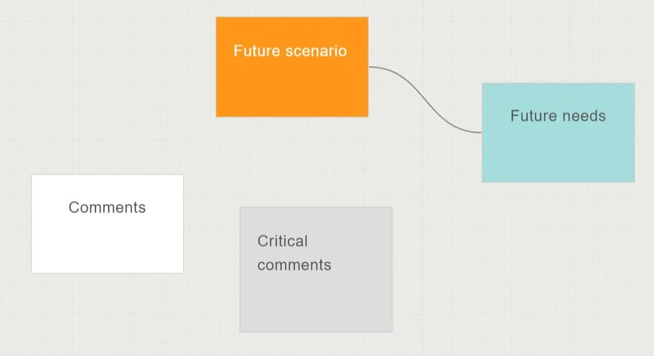 팀마다 맡게 될 기업을 정하기 전에 이 워크샵을 진행했다는 점은 인상적이었다. 왜 그런지 물어보니, 기업을 정한 뒤에 그 기업에 적합한 미래상을 고민한다면 생각이 편향되기 쉽기 때문에 가능한 많은 미래상부터 생각해낸 뒤 기업에 관해 고민해보는 것이라고 했다.