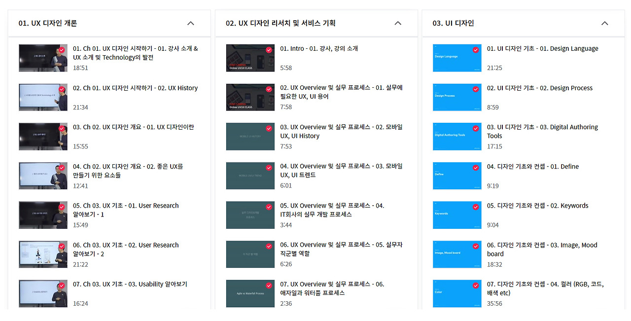 얕은 디자인 감각과 어도비 툴 실력만 갖고 있던 내가 할 수 있는 노력은 무엇일까. 그 시작은 가장 기본적이고 원론적인 디자인 개념부터 이해하는 것이라고 생각했다. 그와 동시에 단기간에 실무적인 감각도 길러야 했다. 사용자 경험에 관한 이론적인 개념과 실제 협업에서 적용할 수 있는 디자인 실무 역량을 익히고 싶어 패스트캠퍼스의 UX/UI 디자인 강의 패키지를 구매했다. 짧은 영상 강의인만큼 부담 없이 매일 꾸준히 공부하는 것이 개인적인 목표였고, 집에서뿐만 아니라 이동 시간이나 자투리 시간에도 강의를 챙겨보며 디자인 개념과 실무를 공부했다.