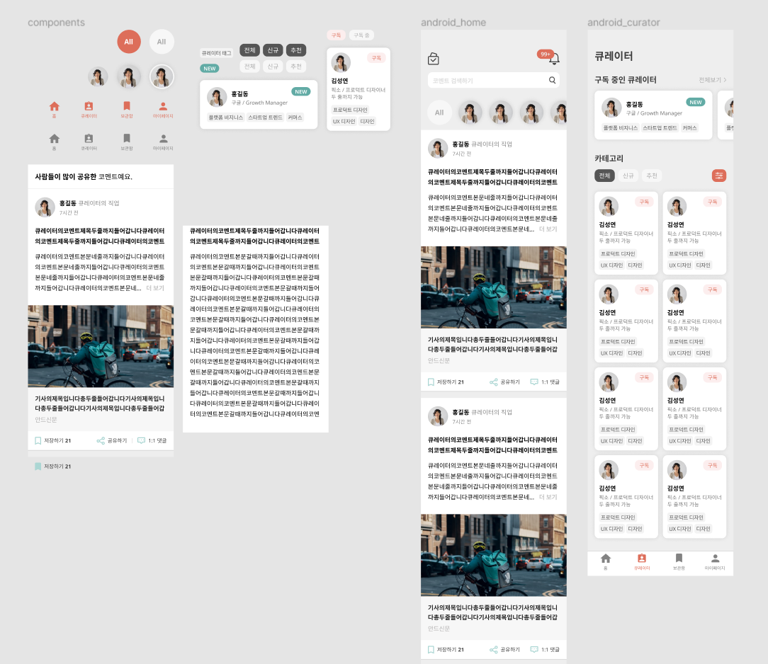 이번 리디자인 프로젝트에서의 가장 큰 takeaway는 아무래도 UI 및 프로토타이핑 툴인 피그마(Figma) 사용에 익숙해졌다는 점 아닐까 싶다. 그래픽 표현이 미숙해 초기 와이어프레임은 직접 손으로 그렸고, 처음 만지는 툴로 GUI를 하나하나 그리는 일에는 겁부터 났는데, 파트너 언니의 도움 덕에 그래픽 작업이나 툴 사용에 조금씩 익숙해질 수 있었다. 이전에 사용했던 Adobe XD에는 없던 '프레임', '컴포넌트' 등의 기능은 낯설고 어려웠지만, 파트너 언니를 따라 그려보기도, 또 직접 뱃지나 버튼을 직접 만들어 등록해보기도 하면서 작업에 익숙해져 갔다. 이 경험을 통해 보다 효율적이고 빠른 디자인 작업 방식을 터득할 수 있었다.