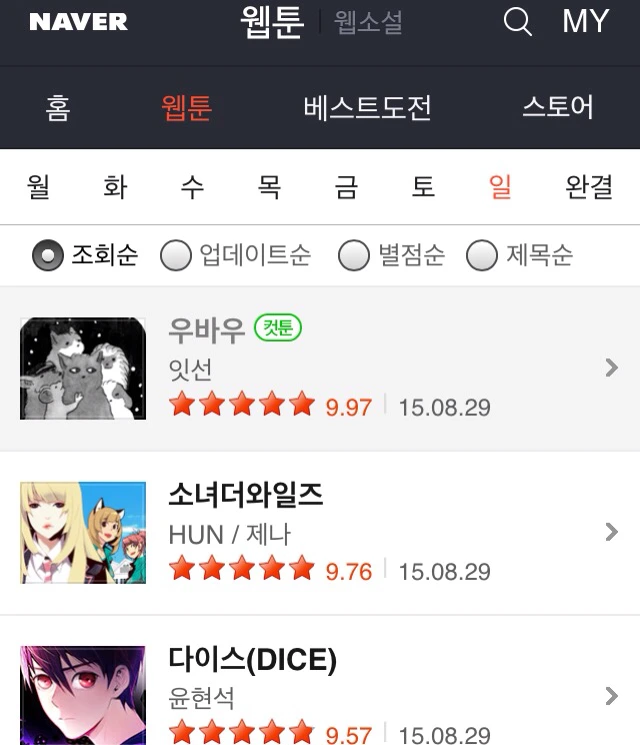 링크 : http://m.comic.naver.com/webtoon/list.nhn?titleId=651675&week=sun