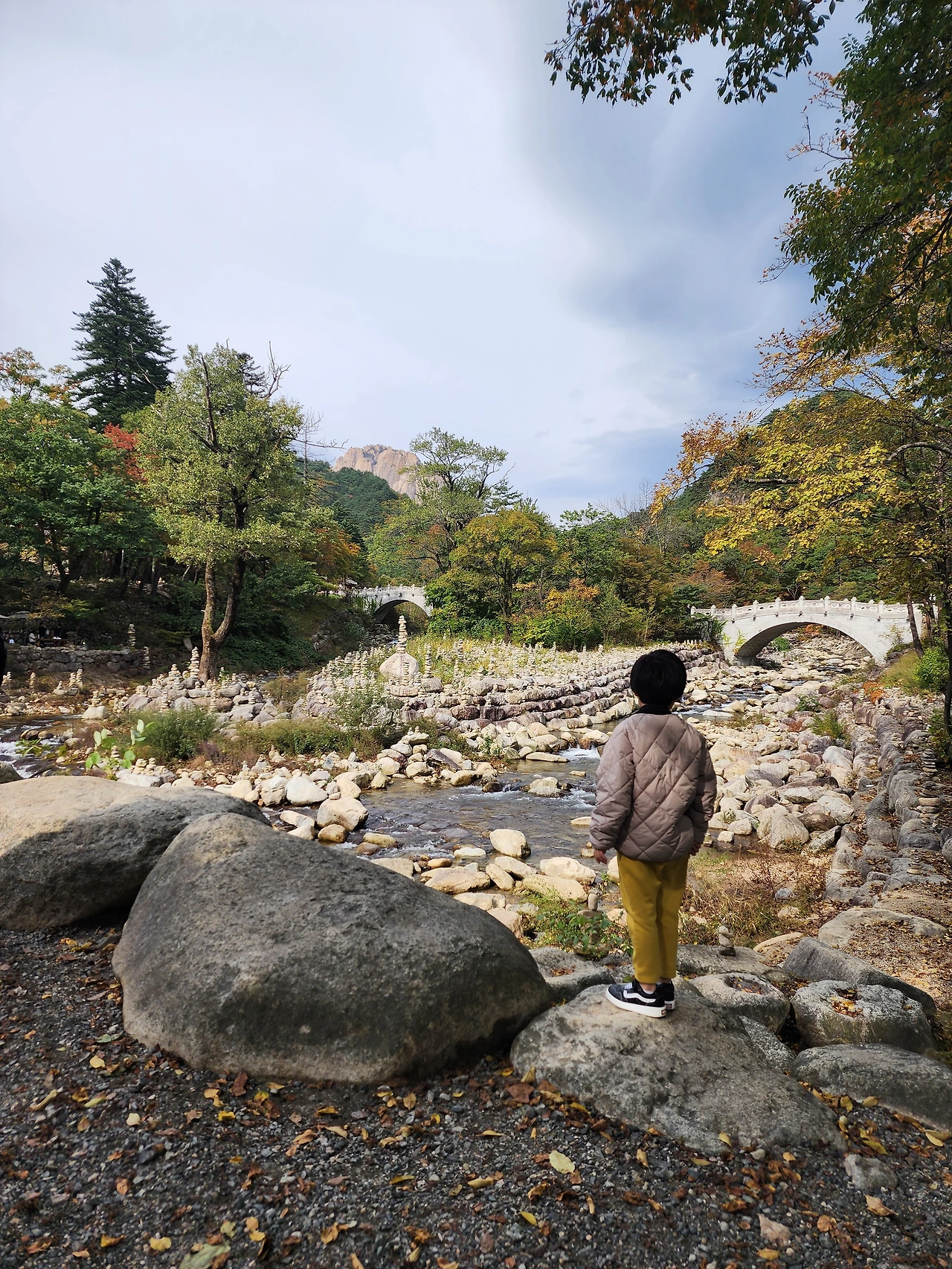 지지난주 설악산에 있는 신흥사에 들렀다 내려오는 길이었다. 날씨가 완연한 가을날이라 하늘도 파랗고 햇살도 따사롭고 바람도 선선과 쌀쌀의 어느 경계즈음이었는데 이보다 완벽할 수 있을까 싶었다. 그런 만큼 사람이 어마어마하게 많았는데 정말 어디를 가든 인산인해였다. 등산로 가기 전부터 설악산 입구 초입까지 차도 많고 사람도 많고 음식점이든 카페든 바글바글 했다. 모두 가족 단위 혹은 친구나 연인과 함께 온 것처럼 보였다. 물론 나도 남편과 초2 아들과 함께 간 터였다. 초2 아들은 아직 키도 그렇고 덩치가 작아 체력이 많은 편이 아니라 신흥사까지만 들렀다 오는데도 힘들다고 칭얼거렸다. 나는 마음 같아서는 울산바위나 토왕성 폭포까지 올라갔다 오고 싶었지만 아이와 남편만 남겨두고 다녀올 수는 없으므로 다음을 기약하며 내려와 카페에 들르기로 했다.