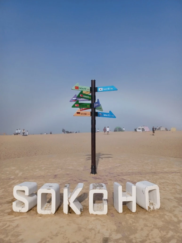 길 끝에 속초해수욕장 대관람차 속초아이가 보인다. 역시 여기도 해무때문에 바다가 뿌옇다. 그래도 백사장에 사람들이 꽤 많았고 해무 때문인지 조심하라는 안내방송이 계속 나온다. 모래사장을 걷는 대신 속초해수욕장 솔밭길로 가본다. 솔밭길 입구에는 버스킹이 한창이다. 역시 속해는 젊음의 상징이다. 삼삼오오 계단에 앉아 버스킹을 즐기는 사람들이 꽤 여유롭게 보인다. 노래를 들으며 솔밭길로 들어갔다.