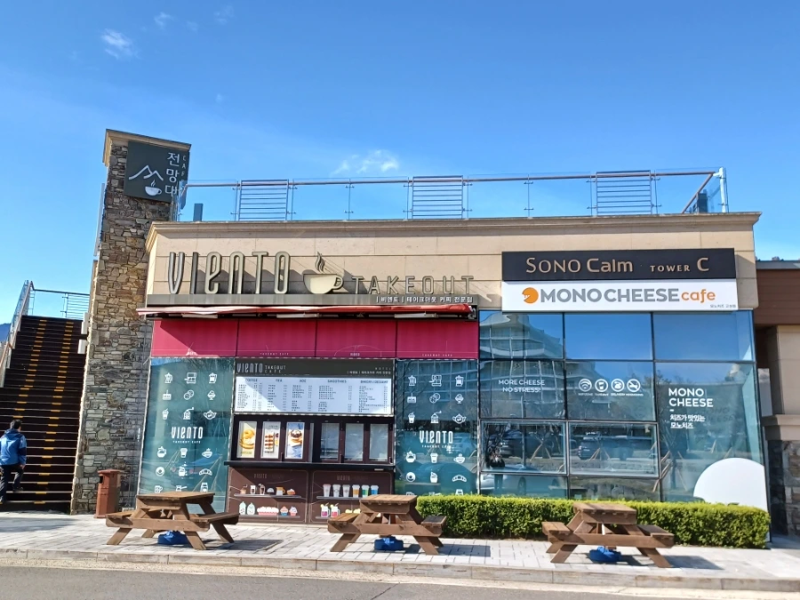 다시 주차한 비엔토로 돌아왔다 비엔토는 아직 오픈전이지만 커피숍 왼편 계단을 통해 올라가는 전망대는 24시간 항상 오픈되어 있다. 그래서 좋다. 이른 아침에 와도 좋으니까!