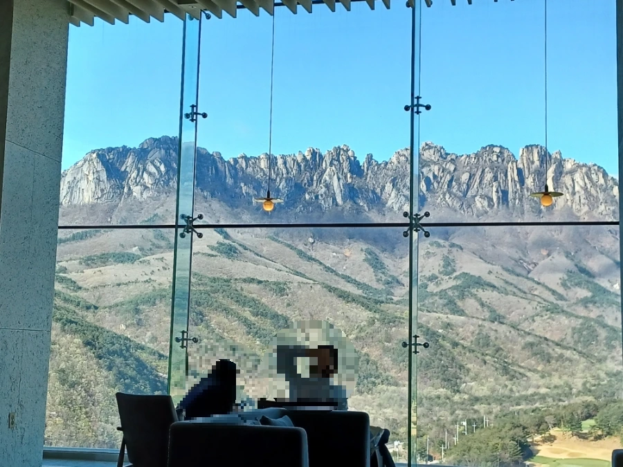 더엠브로시아 창 너머 울산바위를 보니 또 설레기 시작한다. 평일임에도 창가 자리는 벌써 사람들로 만석이라 우선 주문을 하고 두 번째 줄 적당한 자리에 앉았다.