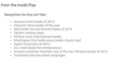 -출처: Amazon.com "Recognition for Give and Take" 캡처-
