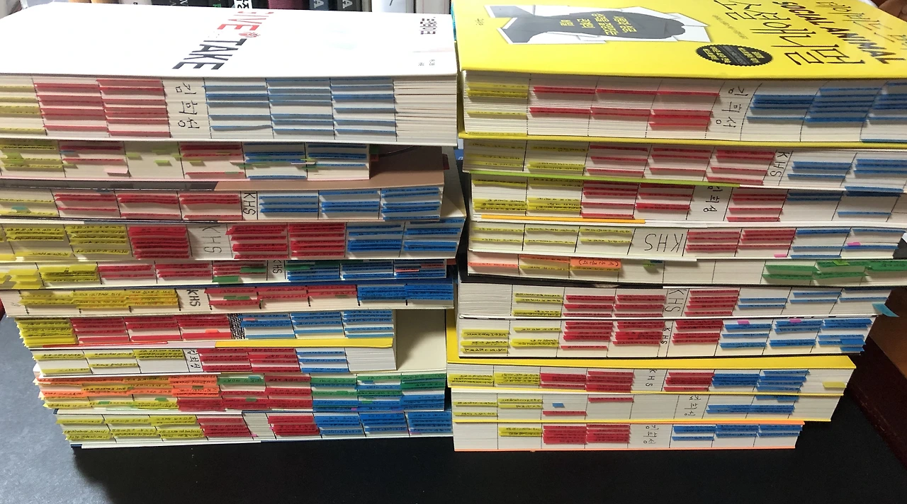 이렇게 초독을 할 때 포스트잇으로 표시를 다 해놓으면 '재독'을 하는 시간이 절반 이상 축소된다. 각각의 포스트잇이 의미하는 부분들과 포스트잇 끝자락에 적어놓은 키워드를 보고 필요한 페이지를 빠르게 펼쳐낼 수 있다. 그리고 해당 페이지를 차분히 스캐닝하면 필요한 부분만 색출하여 빠르게 재독해나갈 수 있기 때문이다.