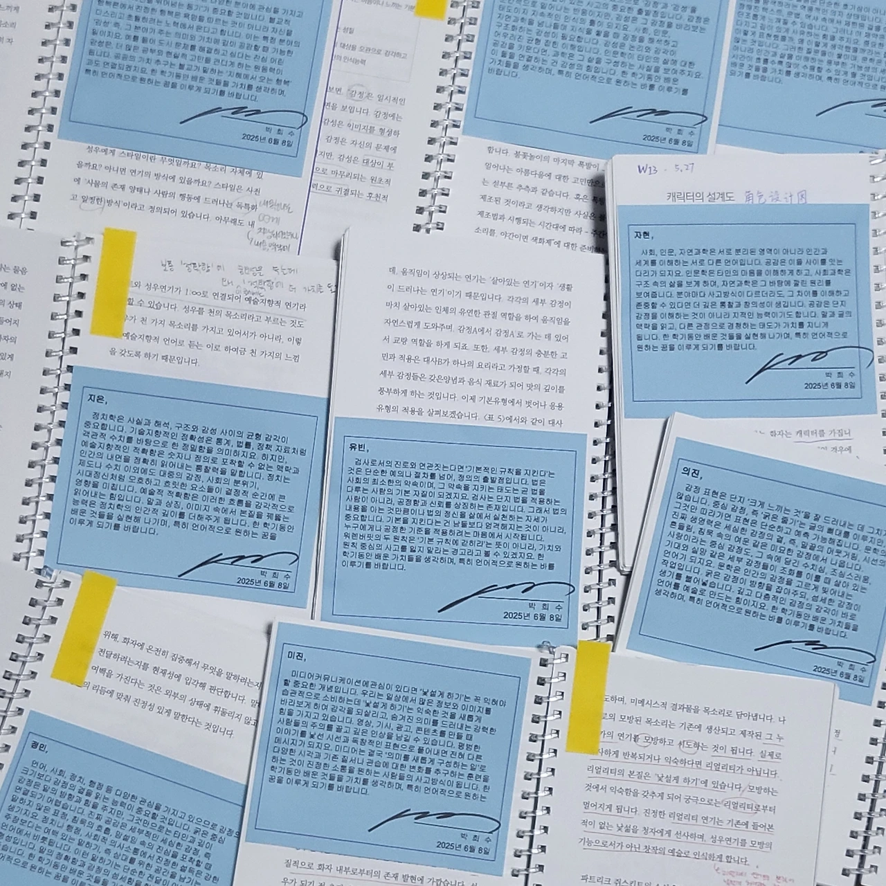학기 초의 연결 고리가 전체 학기의 중심으로 돌아가기를 바랐다. 이론을 엮고 응용하며 스스로 정체성을 찾아 나가는 아이들의 진심을 읽는다. 부교재 곳곳에 포진한 언어학 이론의 씨앗들을 실제의 자신으로 싹틔우기 위해 막막했지만 굳건히 밀고 나갔던 시간들이 정리되고 있다.