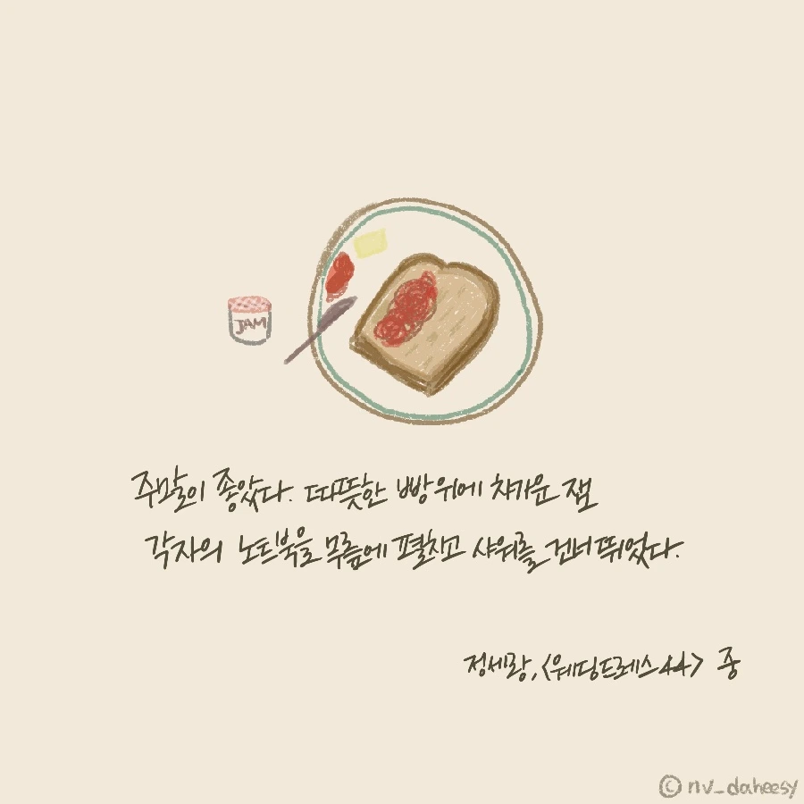 물론 그치만 아주 가끔은 이런 달달한 이야기도 껴 있다는 것은 또 참 귀여운 부분이다. 하긴 별로인 현실들 사이에도 잘 찾아보면 귀여운 구석들이 있을 것이다. 아직 아무것도 아닌 삐뚤빼뚤 손그림 손글씨 처럼..? 그래서, 오늘부터 연말까지 그림 그리고 한문장씩 써 보는 2018마지막프로젝트 그림하나문장하나의 첫 스타트 문장으로 가져왔다. 아직은 내가 봐도 어설프고 부족하지만 그래도 천천히 잠깐씩 시간을 내어서 해보려고 한다.