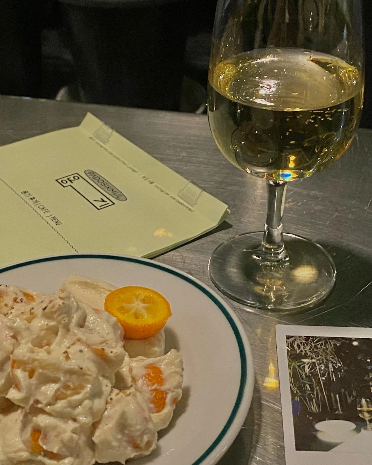 웬만해서는 귀찮아서 엉덩이를 쉽게 떼지 않는 편인데도, 용기는 나를 숙소로 다시 가게 만들었다. 그렇게 다시 프로 봇짐러의 모습으로 돌아와 자리한 세 번째 용기. 자리에 앉으니 정신도 조금 없고, 급하게 다녀오느라 약간 덥긴 했지만, 주문해놓은 화이트 와인을 한잔 마시니 죽어있던 세포들이 토도독 깨어나는 것만 같은 기분이 들었다. 탄산이 잔에 담겨 방울방울 터지듯이 한 모금, 한 모금 식도를 타고 넘어갈 때마다 춤을 추는 것 같았달까. 배부른 상태가 아니면 모든 메뉴를 다 먹어보고 싶어질 정도로 메뉴판을 볼 때마다 웃음이 절로 났다. 그러면서 드는 생각이, 술은 한 잔씩 다 먹어보고 가겠구나-였다. 심지어, 와인인데 42도라는 술도 있어서 두근거리기도 했다. 정말, 이 정도로 술에 진심인 내가 재밌기도 하고 웃기기도 하면서, 다음 여행의 콘셉트는 알코올 여행으로 잡아볼까, 생각마저 들었다. 여행지에 가서 새로운 곳에 가면 그 장소를 기억할 수 있는 술을 먹어보는 걸 좋아하는데, 이 가게의 시그니처는 챠챠가 되는 걸로- 혼자 정했다. 사장님도 가게에서 제일 좋아하시는 술이라며 추천도 해주셨고, 나도 처음 보고 맛보는 술인 데다가, 향도 맛도 너무 내 스타일이라 다음날 오전 비행기만 아니면 주구장창 앉아서 취하고 싶은 맛이었다. 이름도 귀여워서 자꾸 중얼거리게 되는 챠챠. 부산에 가서 파는 곳을 찾을 수 있으려나.