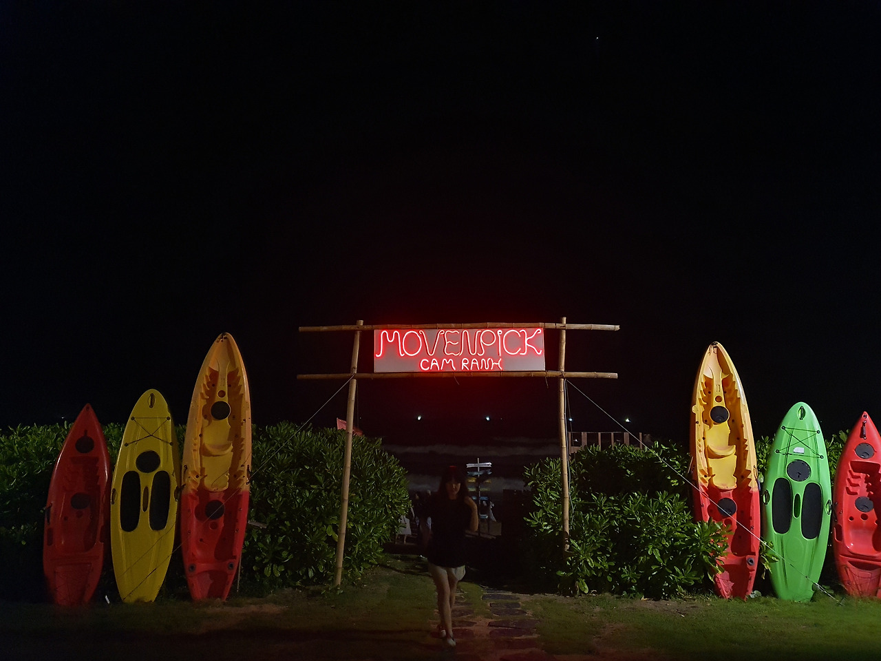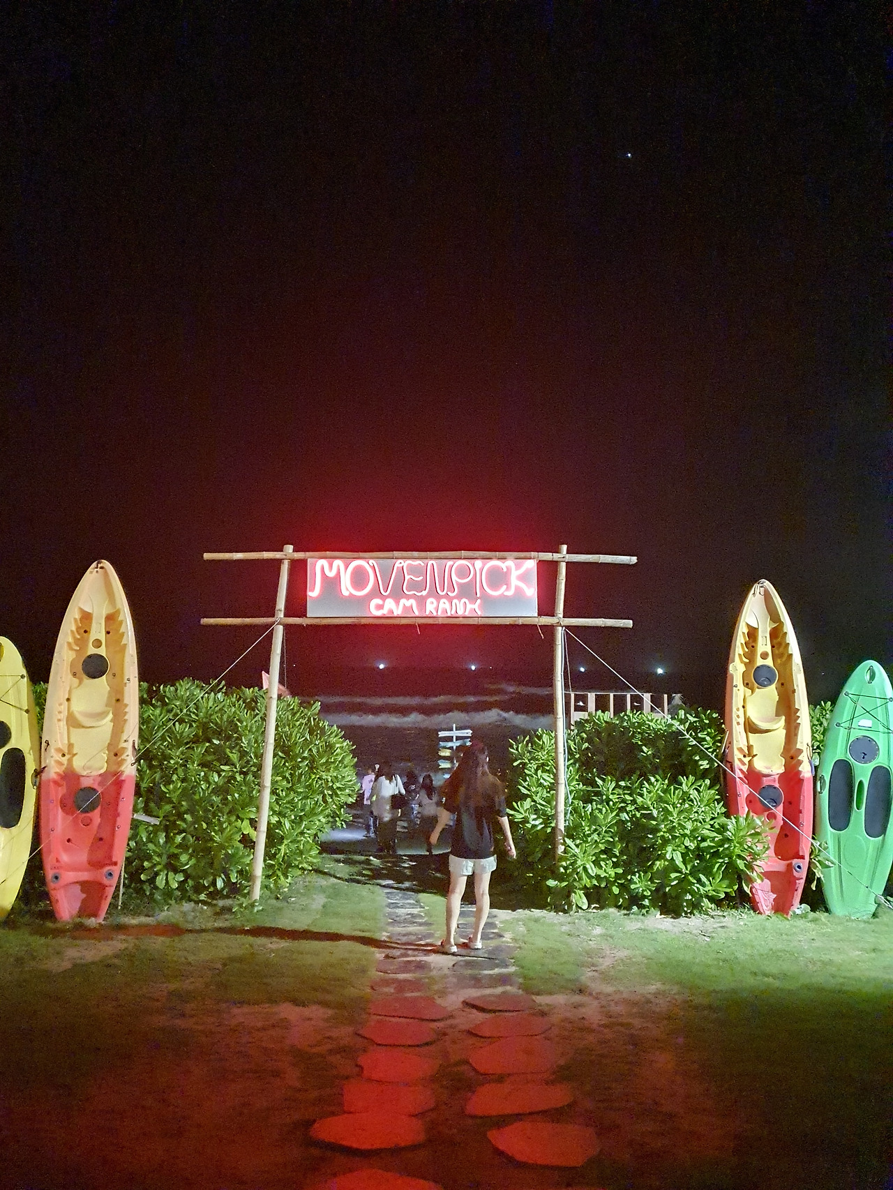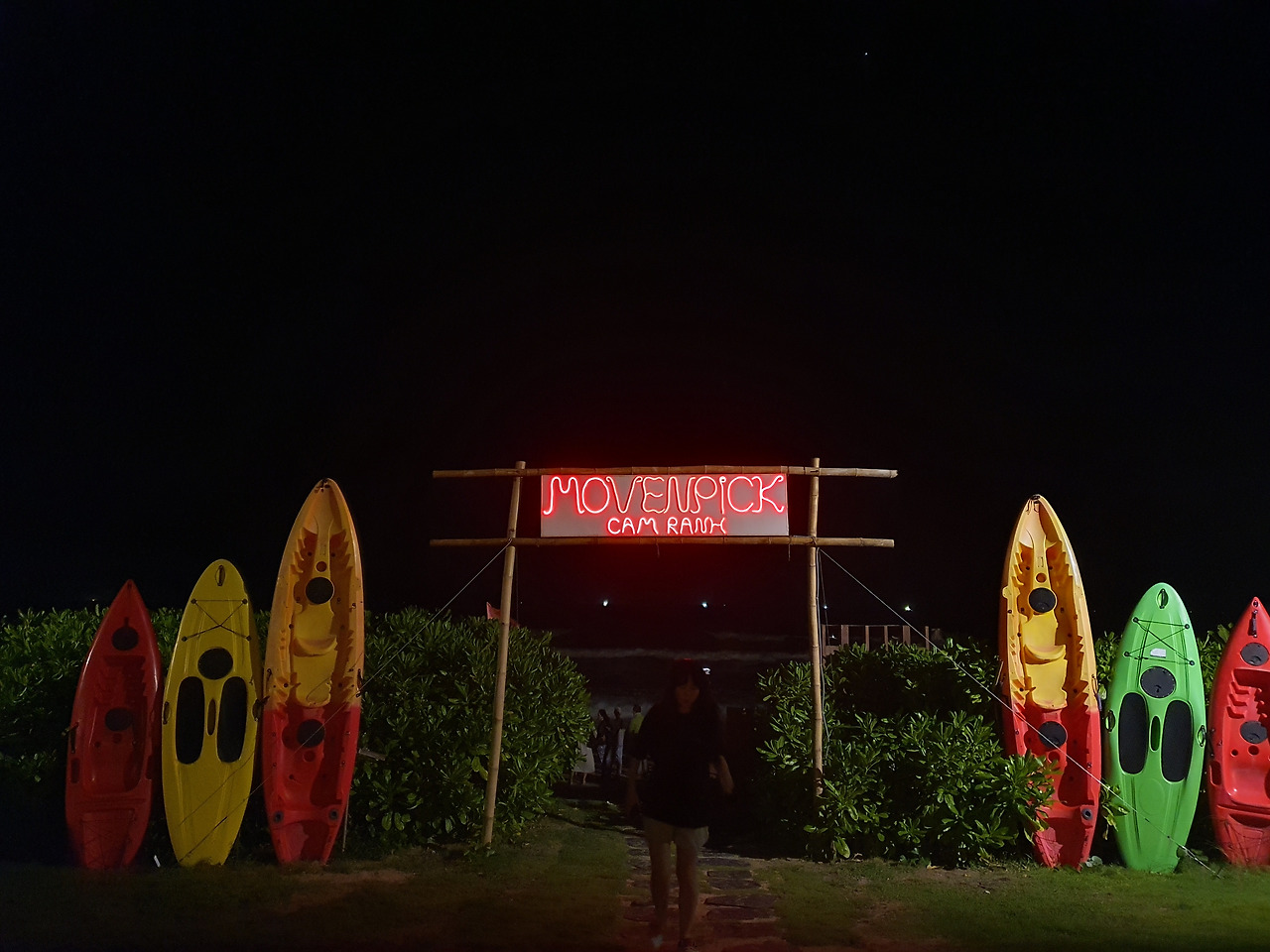 그리고 밖에 나오면 사진 찍을 수 있게 스폿이 있었다. 모벤픽 저 뒤로는 바다다. 사진을 남기고 아쉬운 데로 밤바다 조금 구경하고 내일은 현지 국내선을 타고 다낭으로 가는 날이기 때문에 짐을 정리하고 티켓, 여권, 주민등록증 (혹시나 몰라서) 만발의 준비를 해야 하기 때문에 숙소로 복귀하고 짐을 정리했다.
