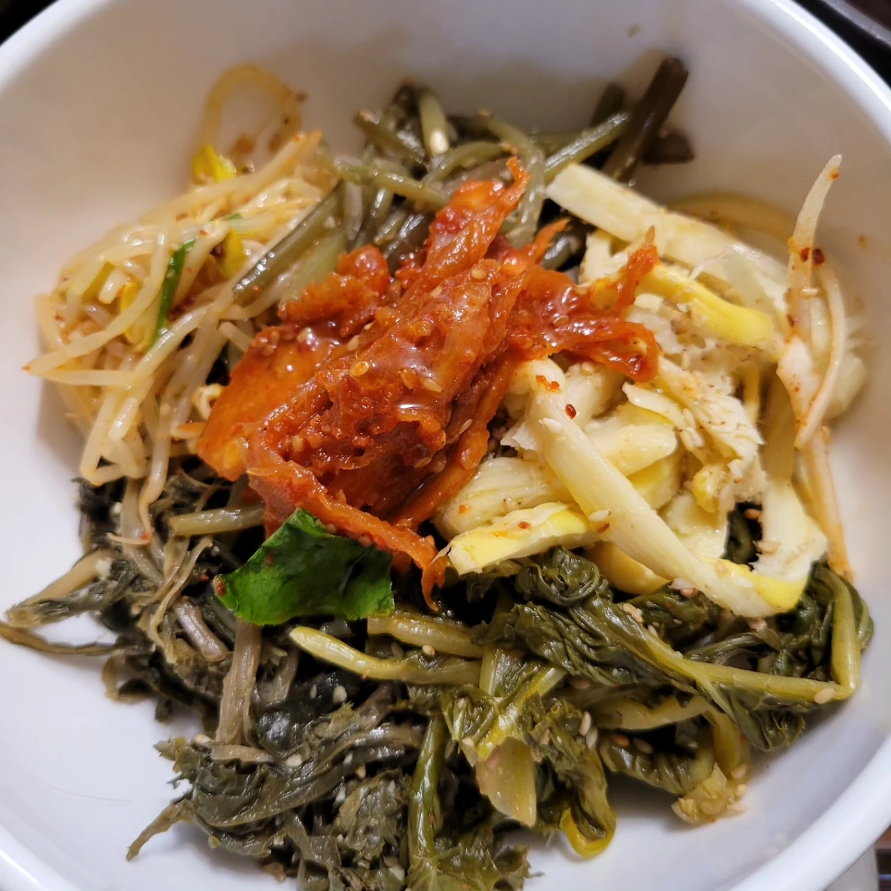 집에 돌아와 생각한다. ‘나물이란 게 어쩌면 이리도 종류가 많을까!’ 이 많은 나물은 어릴 적 엄마가 해줬던 나물과 별로 겹치지 않는다. 나고 자란 지역과 식성이 다르고, 어쩌면 세월이 흐름 속에 사라진 것들도 많겠다 싶다.